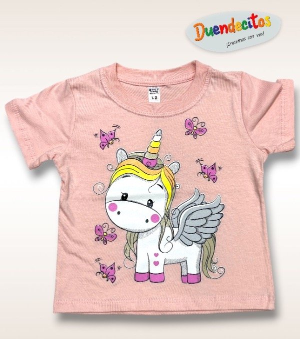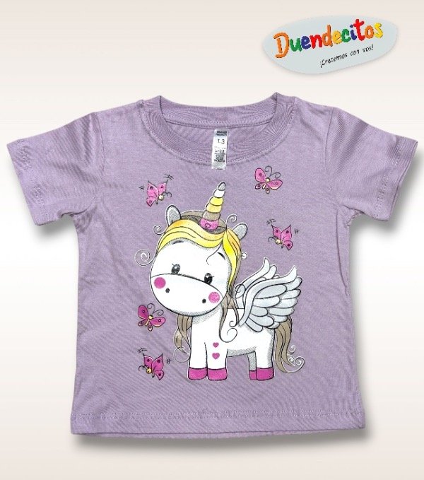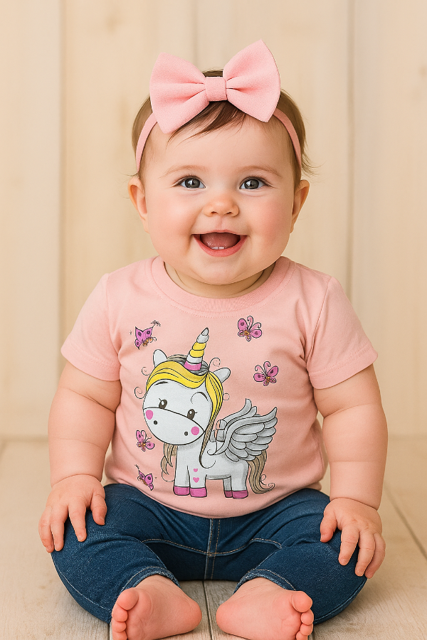 Remera manga corta de algodón con estampa luminiscente (brilla en la oscuridad) de Unicornio bebé