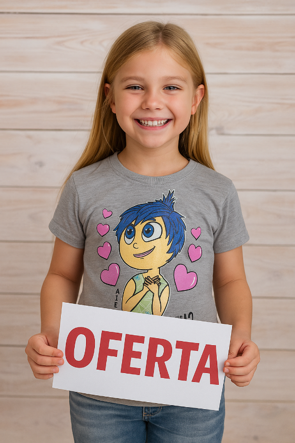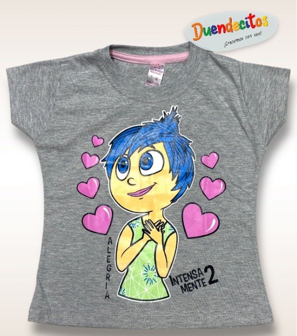 Remera manga corta con estampa luminiscente, brilla en la oscuridad, diseño Alegría
