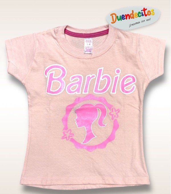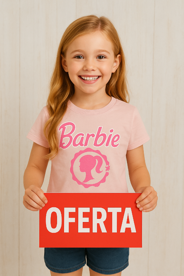 Remera manga corta con estampa luminiscente, brilla en la oscuridad, diseño Barbie