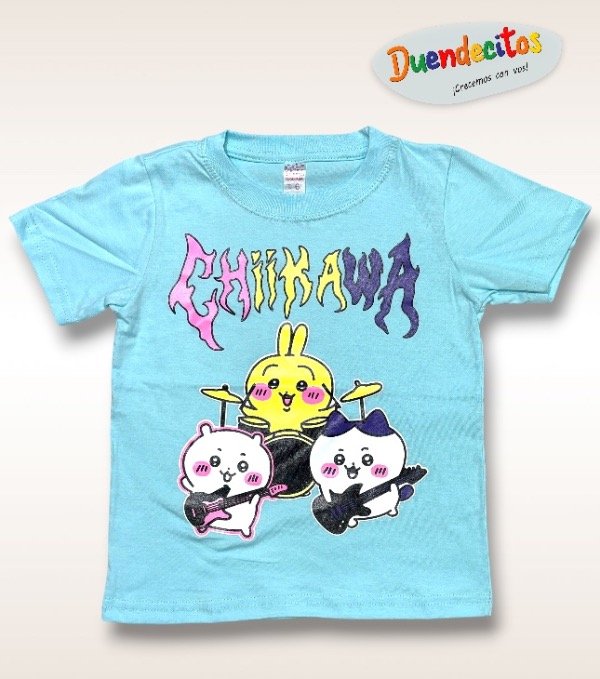 Remera manga corta con estampa luminiscente de Chiikawa, brilla en la oscuridad