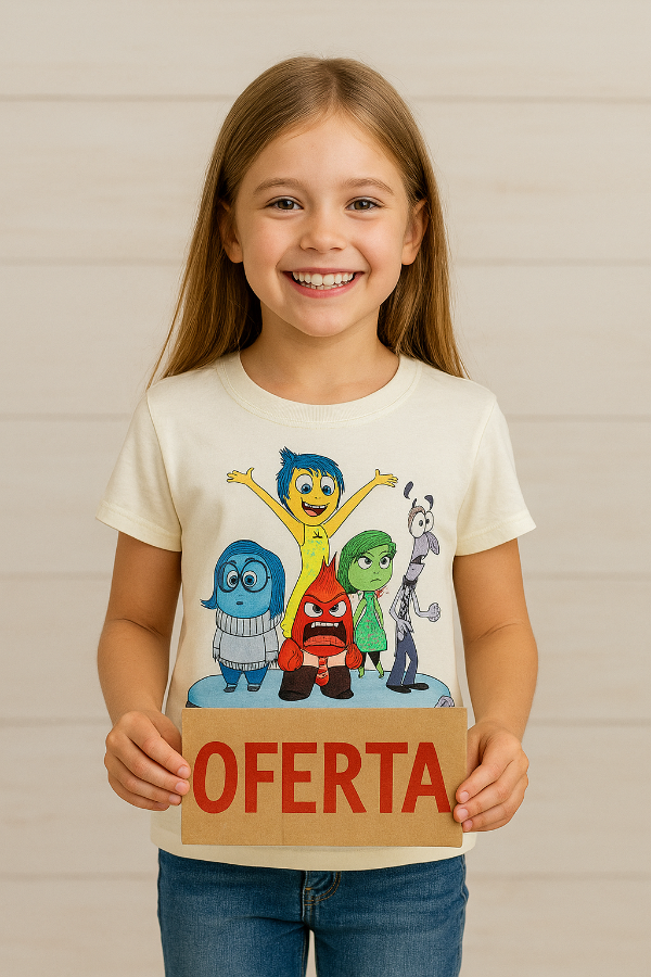 Remera manga corta con estampa luminiscente, brilla en la oscuridad, diseño Intensamente