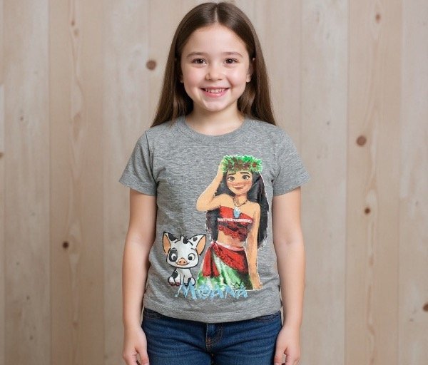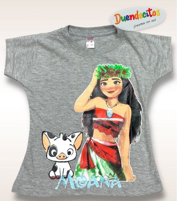 Remera manga corta con estampa luminiscente, brilla en la oscuridad, diseño Moana